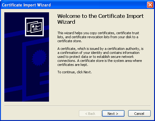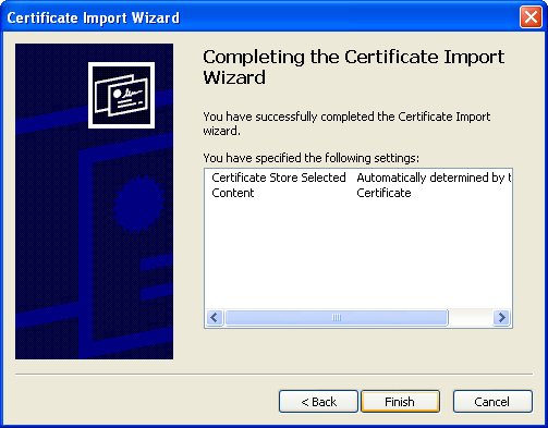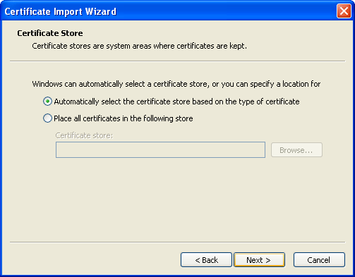 - Click 'Next' to automatically store the certificate.