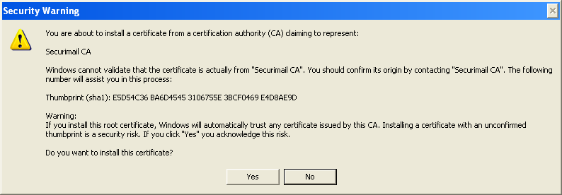- There will be a security warning. Click 'Yes' to finally install the certificate.